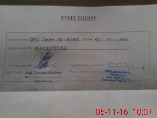 | EMIS Code: 38210891 | Name of School: GHS CHAK NO. 47/MB | |||