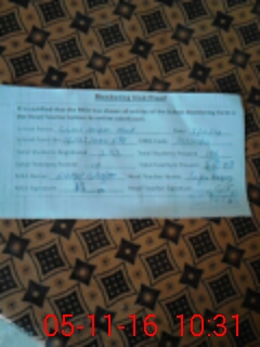 | Attendance Register | Head Teacher | MEA with School | Visit Proof |