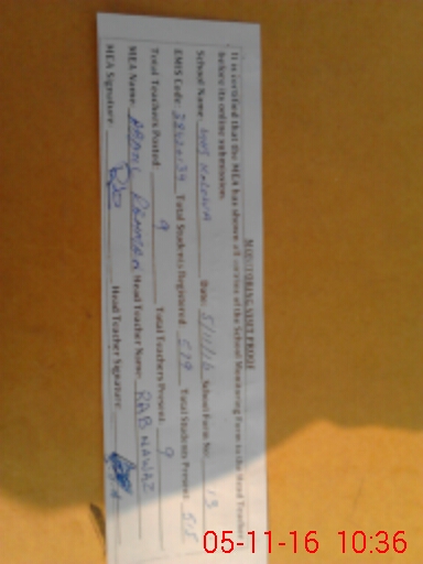 | Certified that this School was Inspected by the Undersigned MEA/DMO Today and the Information Stated Above is as Per Record. | |||||