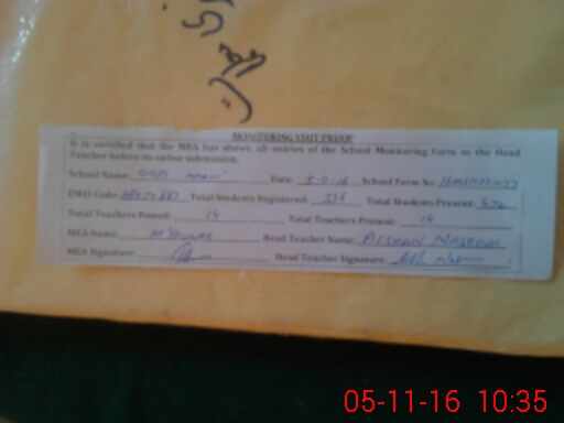 | Attendance Register | Head Teacher | MEA with School | Visit Proof |
