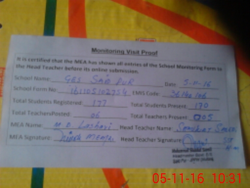 | Attendance Register | Head Teacher | MEA with School | Visit Proof |