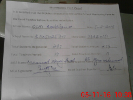 | Certified that this School was Inspected by the Undersigned MEA/DMO Today and the Information Stated Above is as Per Record. | |||||
