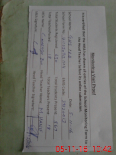| Certified that this School was Inspected by the Undersigned MEA/DMO Today and the Information Stated Above is as Per Record. | |||||