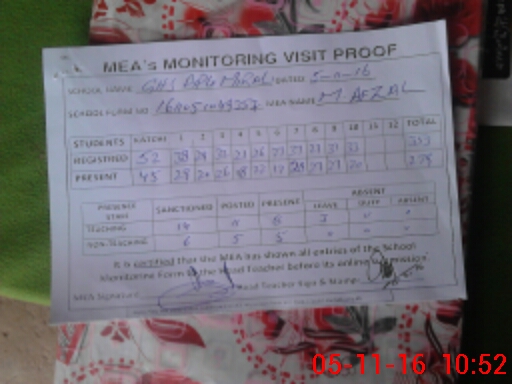 | Certified that this School was Inspected by the Undersigned MEA/DMO Today and the Information Stated Above is as Per Record. | |||||