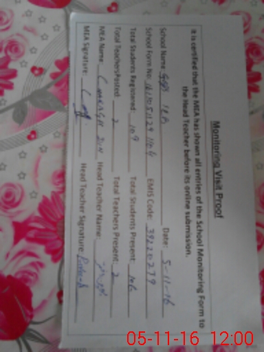 | Certified that this School was Inspected by the Undersigned MEA/DMO Today and the Information Stated Above is as Per Record. | |||||