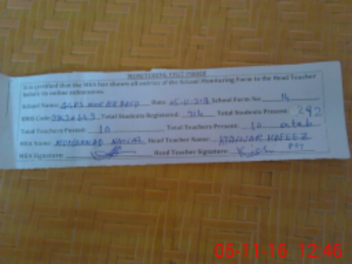 | Name: NA**** MU**** Designation: (School Headmaster's/Headmistress's) PST Phone/Cell Number: 03**** |
