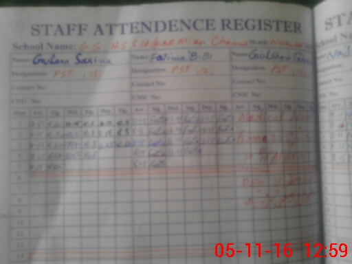 | CNIC | Full Name | Designation | R/C | Absence During Last Calender Month |