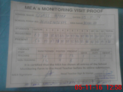 | Attendance Register | Head Teacher | MEA with School | Visit Proof |