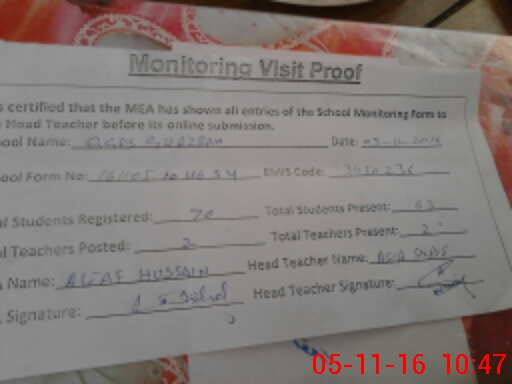 | Certified that this School was Inspected by the Undersigned MEA/DMO Today and the Information Stated Above is as Per Record. | |||||
