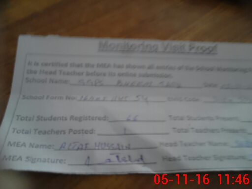 | Attendance Register | Head Teacher | MEA with School | Visit Proof |