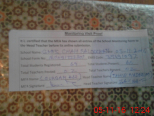 | EMIS Code: 35431097 | Name of School: GPS CHAH BALOCHAN | |||