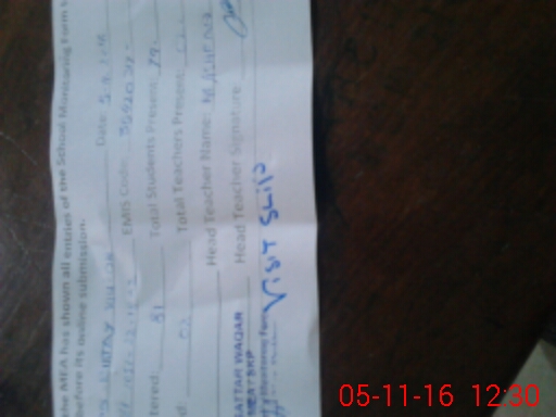 | Monitoring Date: 05-11-2016 | Start Time: 05-11-2016 12:10 PM | End Time: 05-11-2016 12:33 PM | Name of MEA: Ab**** Sa**** Wa**** (R**** | |