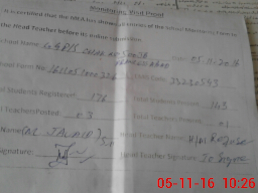 | EMIS Code: 33230543 | Name of School: GGPS CHAK NO 500 JB FRANCIS ABAD | |||
