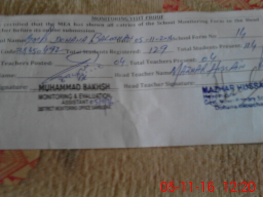 | Name: SA**** BA**** Designation: (School Headmaster's/Headmistress's) PST Phone/Cell Number: 03**** |