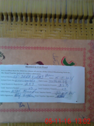 | EMIS Code: 32340048 | Name of School: GPS DERA KORAY KHAN | |||