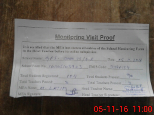 | Attendance Register | Head Teacher | MEA with School | Visit Proof |