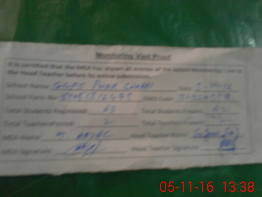 | Attendance Register | Head Teacher | MEA with School | Visit Proof |