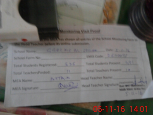 | Attendance Register | Head Teacher | MEA with School | Visit Proof |