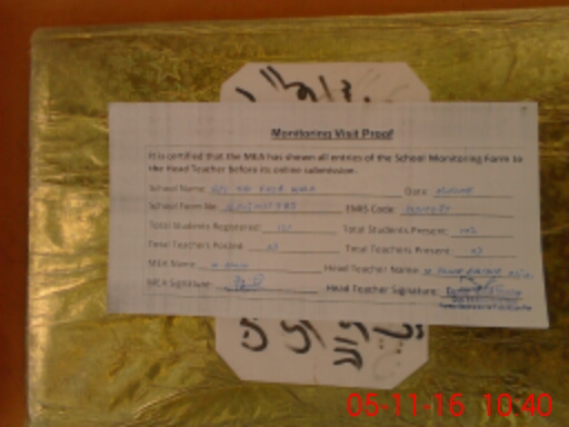 | Attendance Register | Head Teacher | MEA with School | Visit Proof |