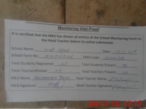 | Certified that this School was Inspected by the Undersigned MEA/DMO Today and the Information Stated Above is as Per Record. | |||||