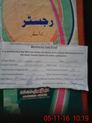 | Certified that this School was Inspected by the Undersigned MEA/DMO Today and the Information Stated Above is as Per Record. | |||||
