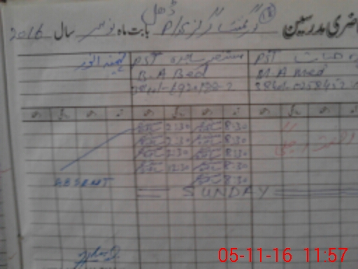 | District: SARGODHA | Tehsil: BHERA | Markaz: CHAK MUBARAK - FEMALE | Level: Primary | |