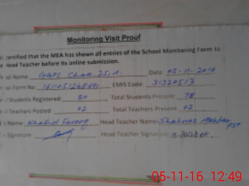| EMIS Code: 31320513 | Name of School: GGPS CHAK NO.25/A | |||
