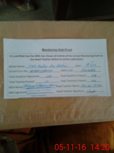 | Attendance Register | Head Teacher | MEA with School | Visit Proof |