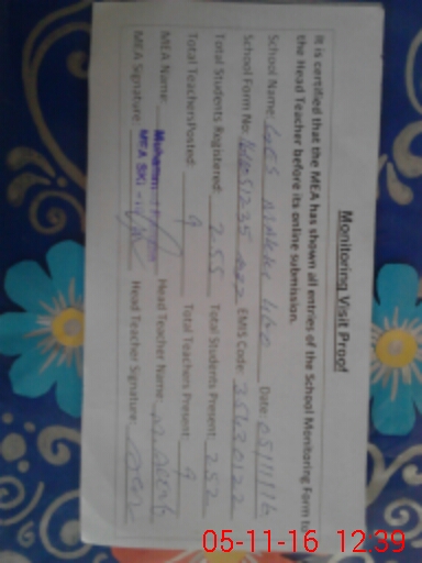 | Certified that this School was Inspected by the Undersigned MEA/DMO Today and the Information Stated Above is as Per Record. | |||||