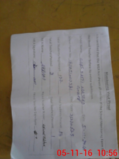 | Attendance Register | Head Teacher | MEA with School | Visit Proof |