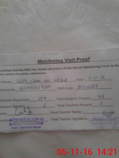 | EMIS Code: 31140283 | Name of School: GGPS CHAK NO 48/3-R | |||