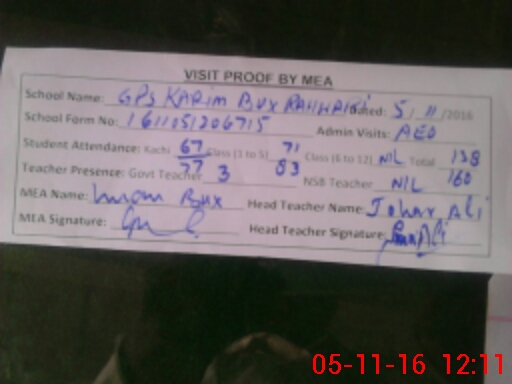 | EMIS Code: 32430097 | Name of School: GPS KARIM BUX RAHWARI | |||