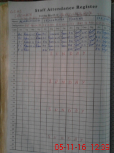 | CNIC | Full Name | Designation | R/C | Absence During Last Calender Month |