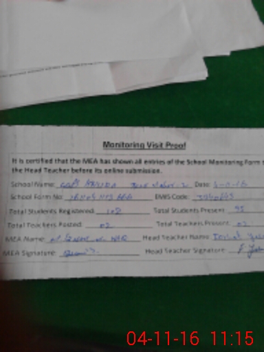 | Attendance Register | Head Teacher | MEA with School | Visit Proof |