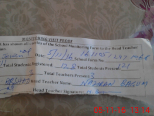| School Visited by School Health & Nutrition Supervisor (No. of Visits) | 1 | Name1: | GOHAR ZAMAN | Name2: | |