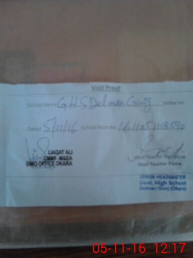 | EMIS Code: 39310015 | Name of School: GHS DELMAN GUNJ OKARA | |||