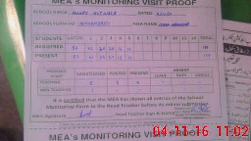 | Attendance Register | Head Teacher | MEA with School | Visit Proof |
