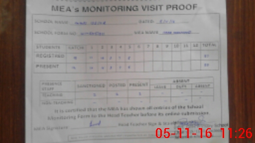 | Attendance Register | Head Teacher | MEA with School | Visit Proof |
