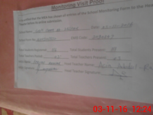 | Attendance Register | Head Teacher | MEA with School | Visit Proof |
