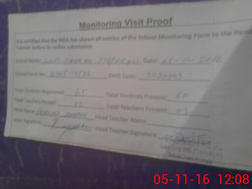 | Attendance Register | Head Teacher | MEA with School | Visit Proof |