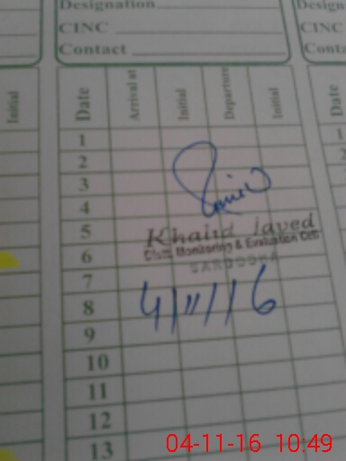 | Monitoring Date: 04-11-2016 | Start Time: 04-11-2016 10:37 AM | End Time: 04-11-2016 10:53 AM | Name of MEA: KH**** JA**** (R**** | |