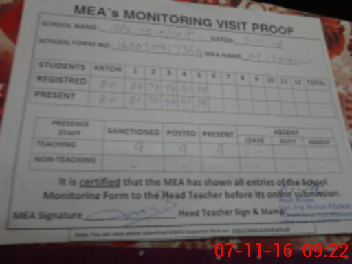 | Certified that this School was Inspected by the Undersigned MEA/DMO Today and the Information Stated Above is as Per Record. | |||||