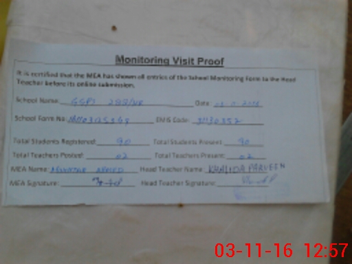 | Attendance Register | Head Teacher | MEA with School | Visit Proof |