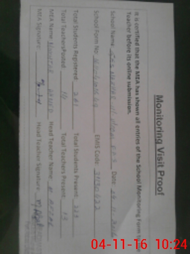 | Certified that this School was Inspected by the Undersigned MEA/DMO Today and the Information Stated Above is as Per Record. | |||||