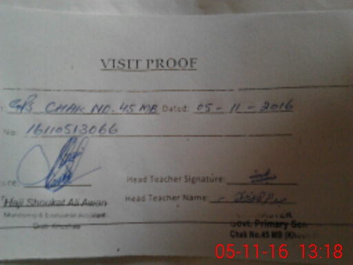 | EMIS Code: 38210257 | Name of School: GPS CHAK NO 45 MB | |||