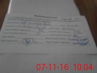 | Attendance Register | Head Teacher | MEA with School | Visit Proof |