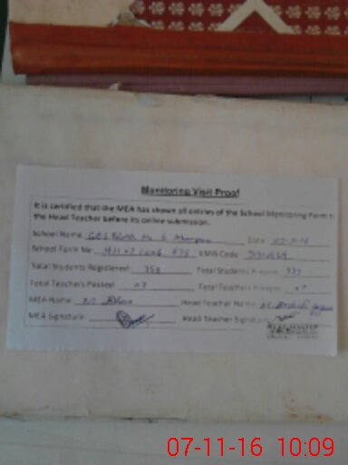 | Attendance Register | Head Teacher | MEA with School | Visit Proof |