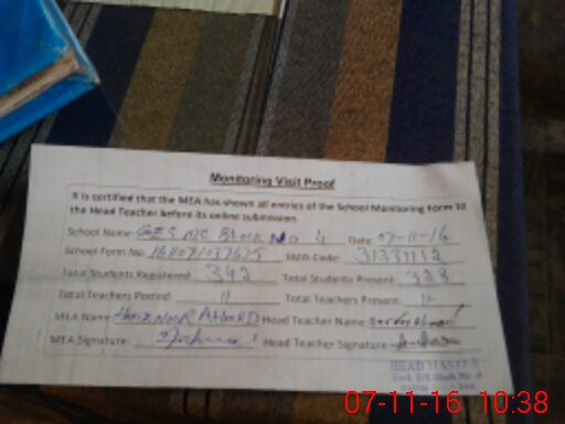 | Certified that this School was Inspected by the Undersigned MEA/DMO Today and the Information Stated Above is as Per Record. | |||||
