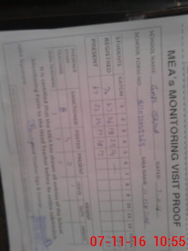 | Monitoring Date: 07-11-2016 | Start Time: 07-11-2016 10:38 AM | End Time: 07-11-2016 10:56 AM | Name of MEA: M.Is**** (S**** 03**** | |