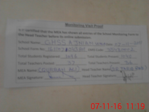 | EMIS Code: 35430002 | Name of School: GHSS AJNIAN WALA SHIEKHUPURA | |||